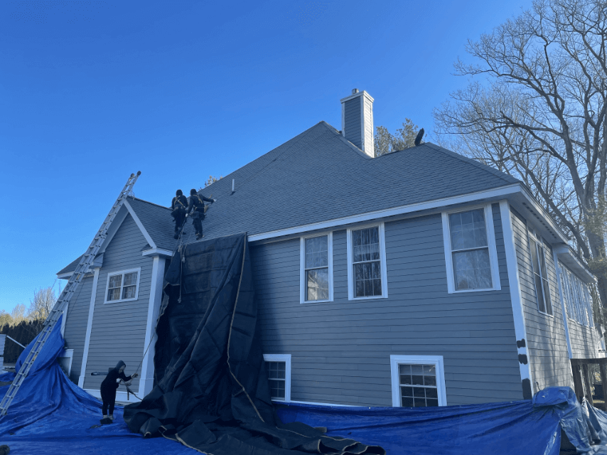 This project was for a complete roof replacement. We also replaced all of the wood trim on the eaves with a composite PVC board. This customer no longer needs to worry about their trim rotting or painting the trim ever again.