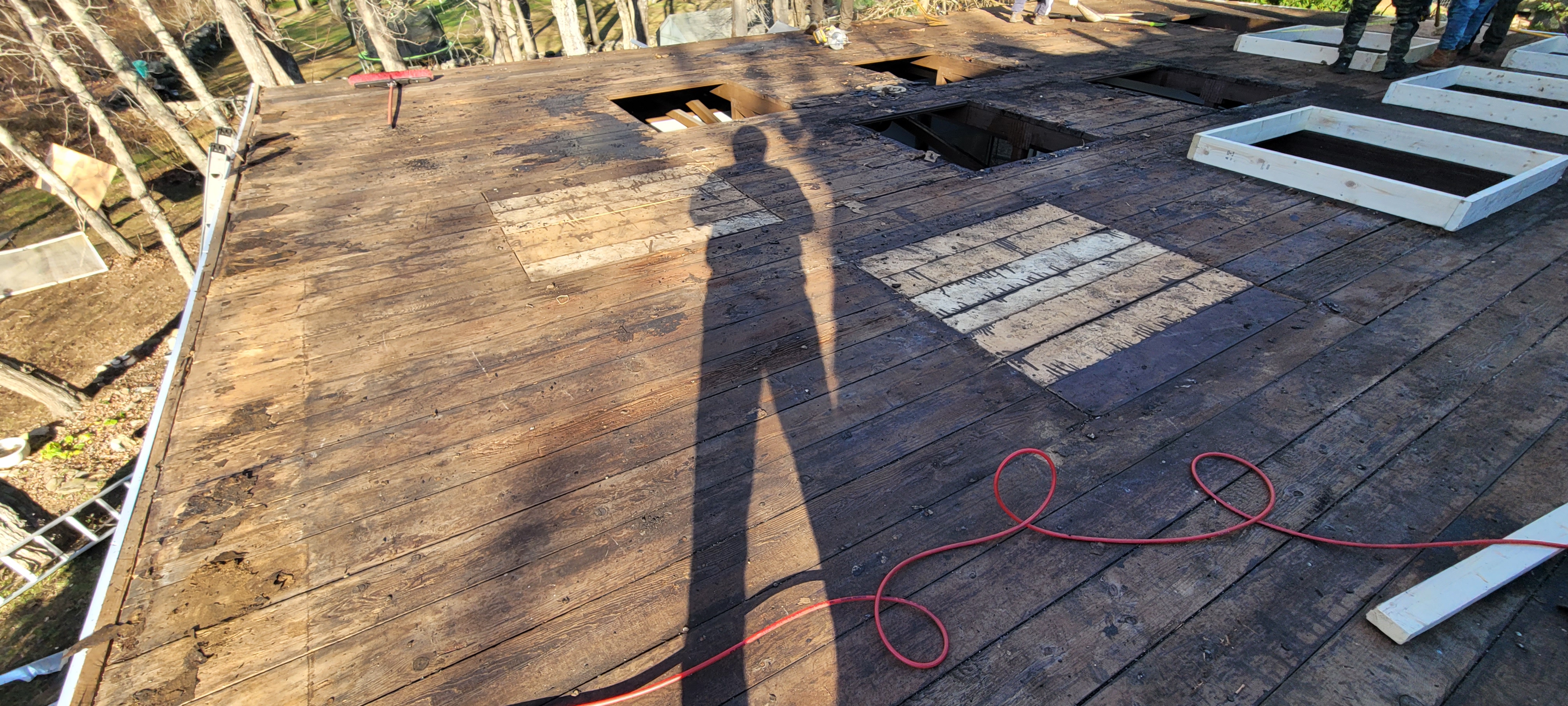 - 60mm rubber roof membrane, insulation board, curb mounted skylights, C3 drip edge, seam tape, and adhesive to hold everything in place.