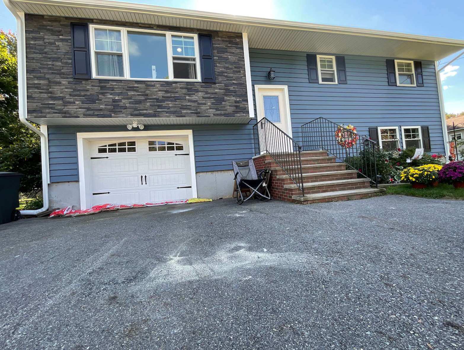 This customer did a complete exterior remodel with Pardigm windows, a complete roof replacement, and brand-new siding with a focal point on their bump out with a stone look.