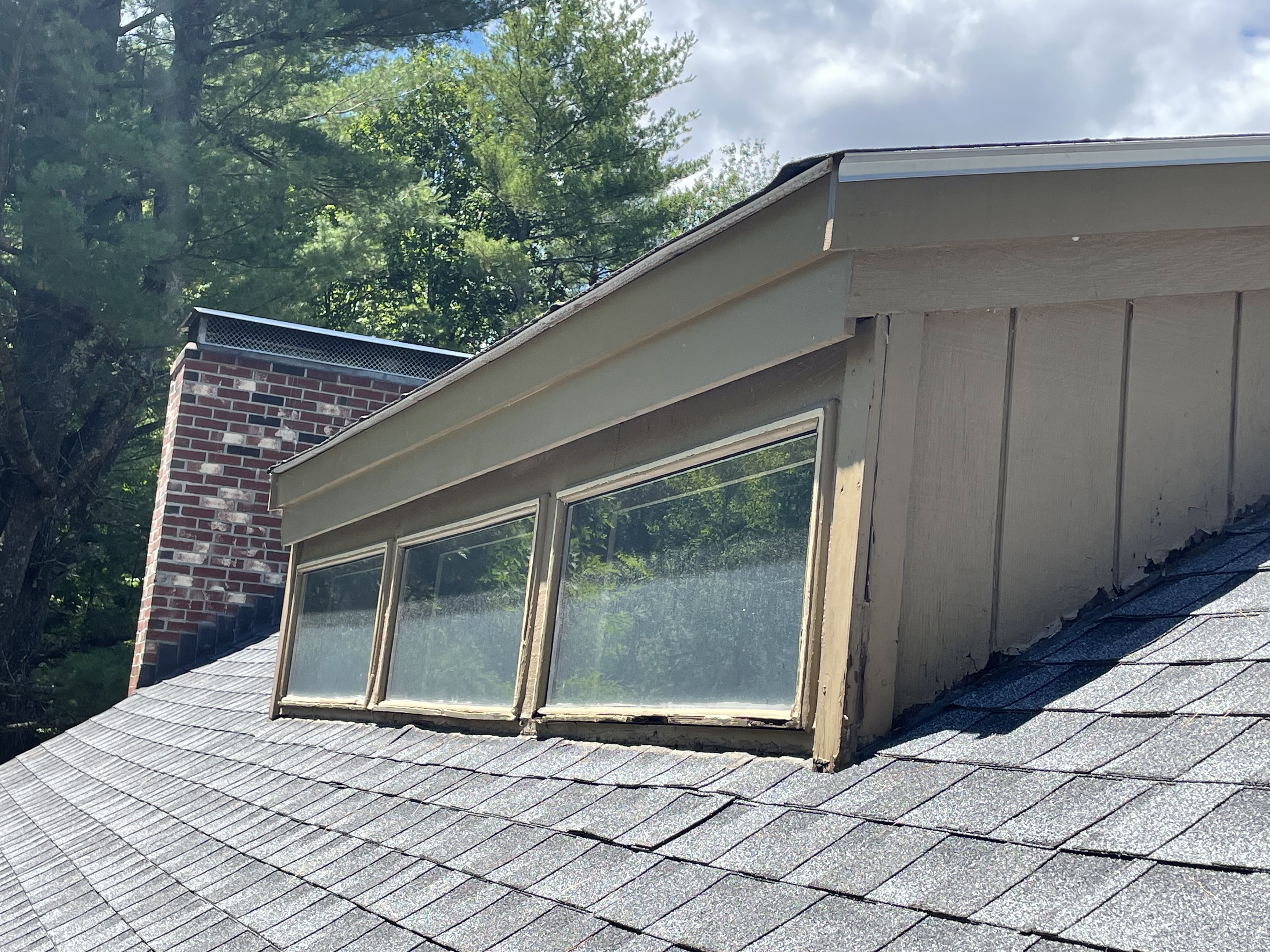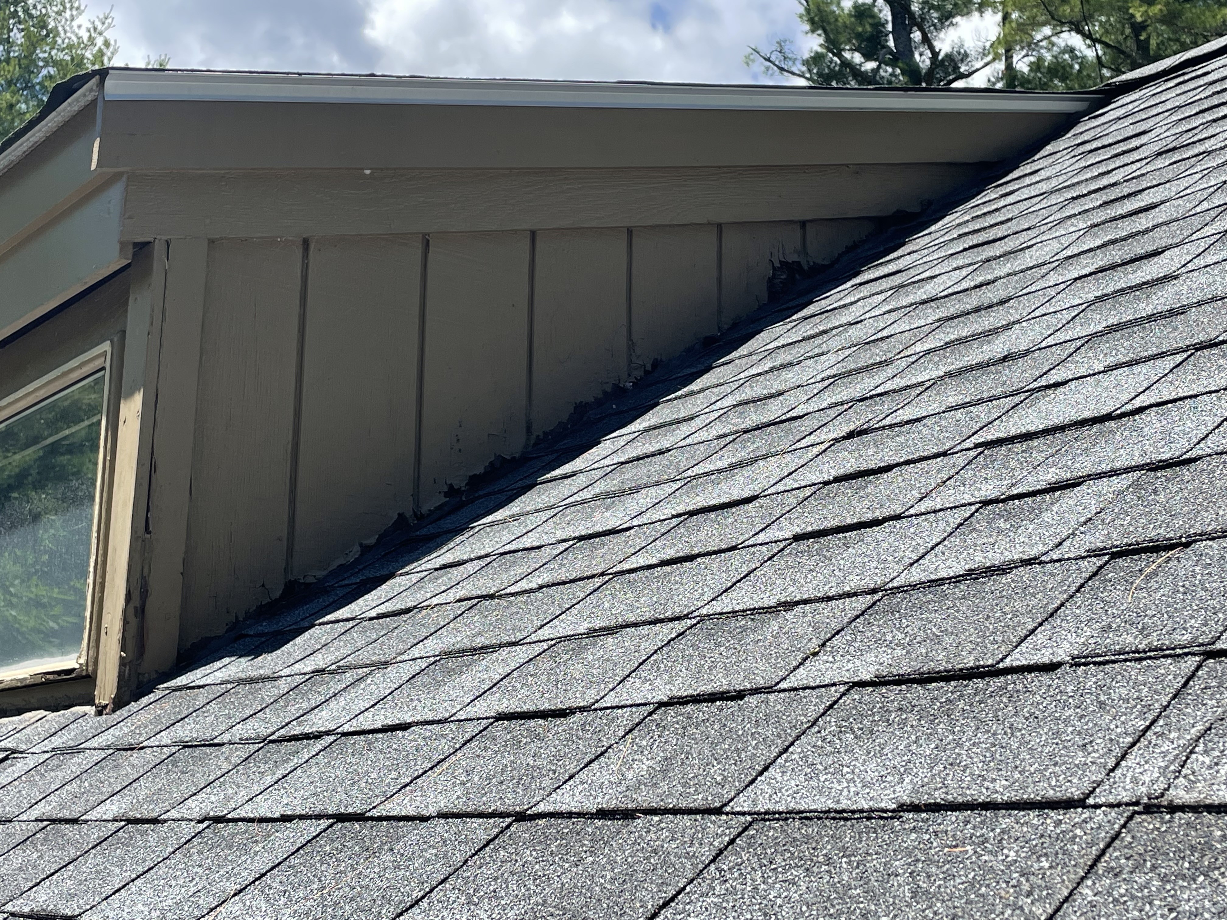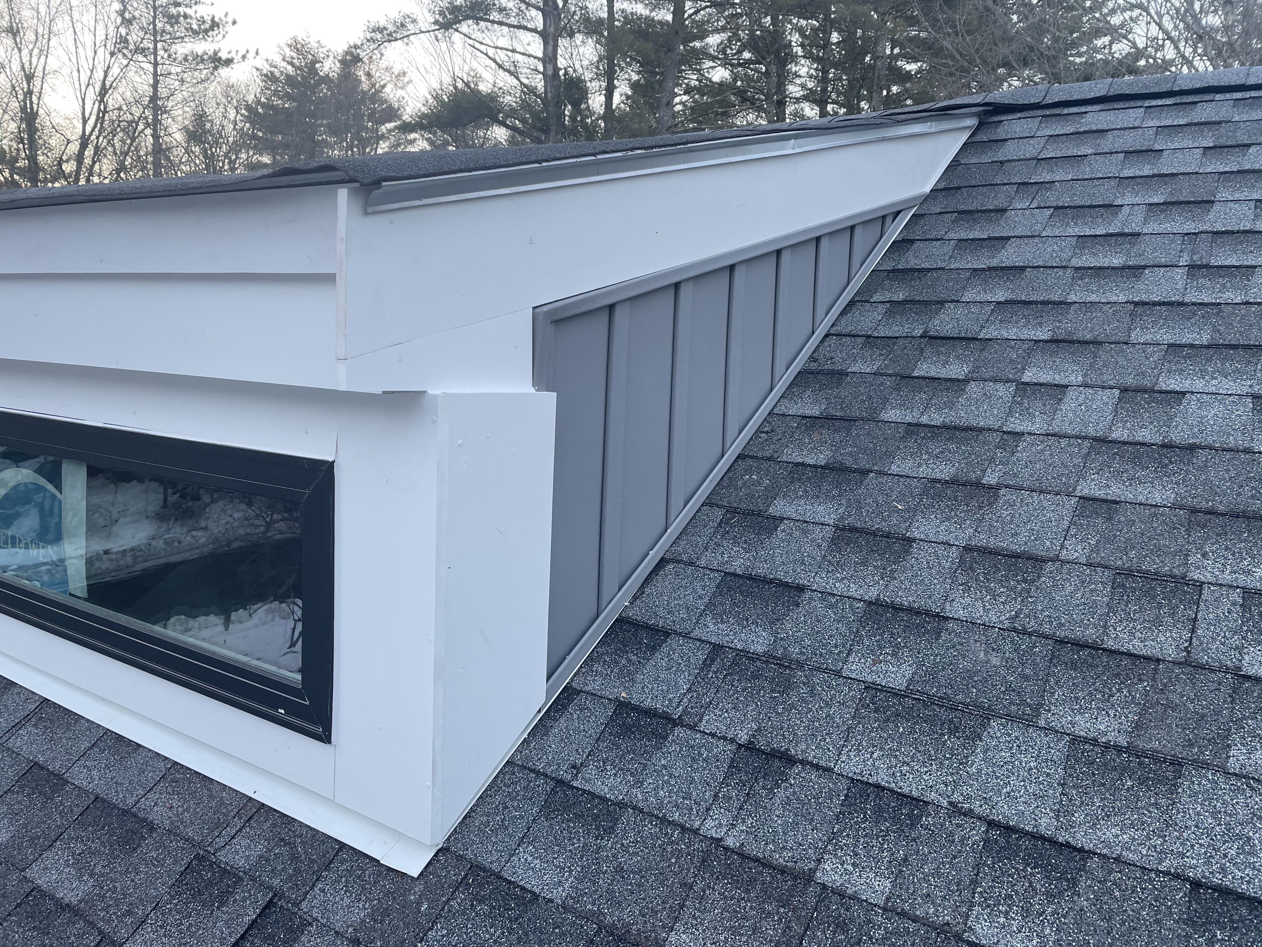We replaced 3 windows, removed the existing T1-11 siding, installed new sheathing, flashing, PVC trim boards, and vinyl Board and Batten siding.